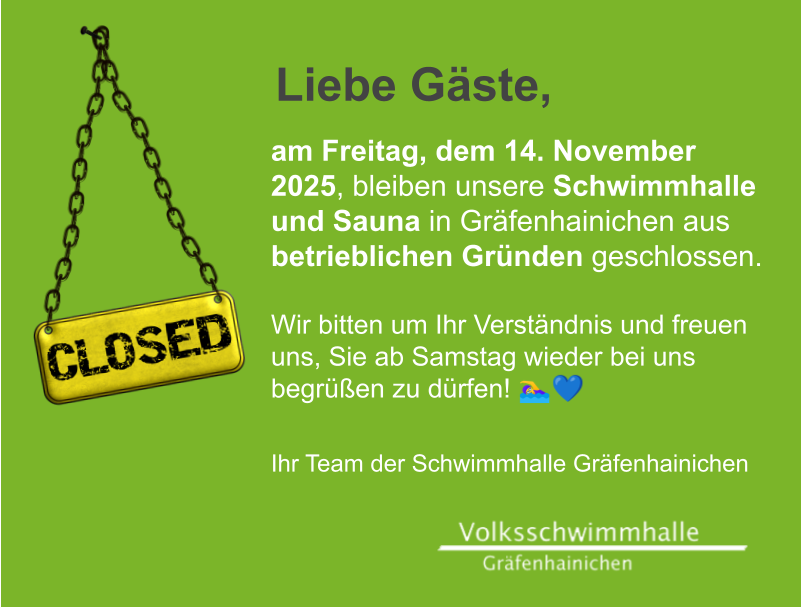 | Samstag | 14.00 Uhr | Fachangestelle/r für Bäderbetriebe |